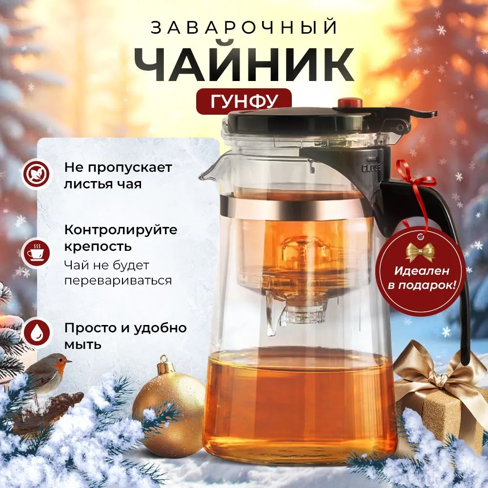 Чайник типод заварочный стеклянный с кнопкой Гунфу 750 мл